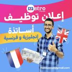 - تعلن Metro Languages عن فتح باب التوظيف لأساتذة اللغة الفرنسية واللغة الإنجليزية للموسم الدراسي الجديد