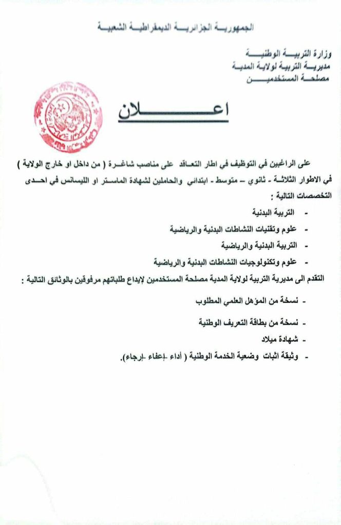 على الراغبين في التوظيف في إطار التعاقد على مناصب شاغرة ( من داخل أو خارج الولاية )