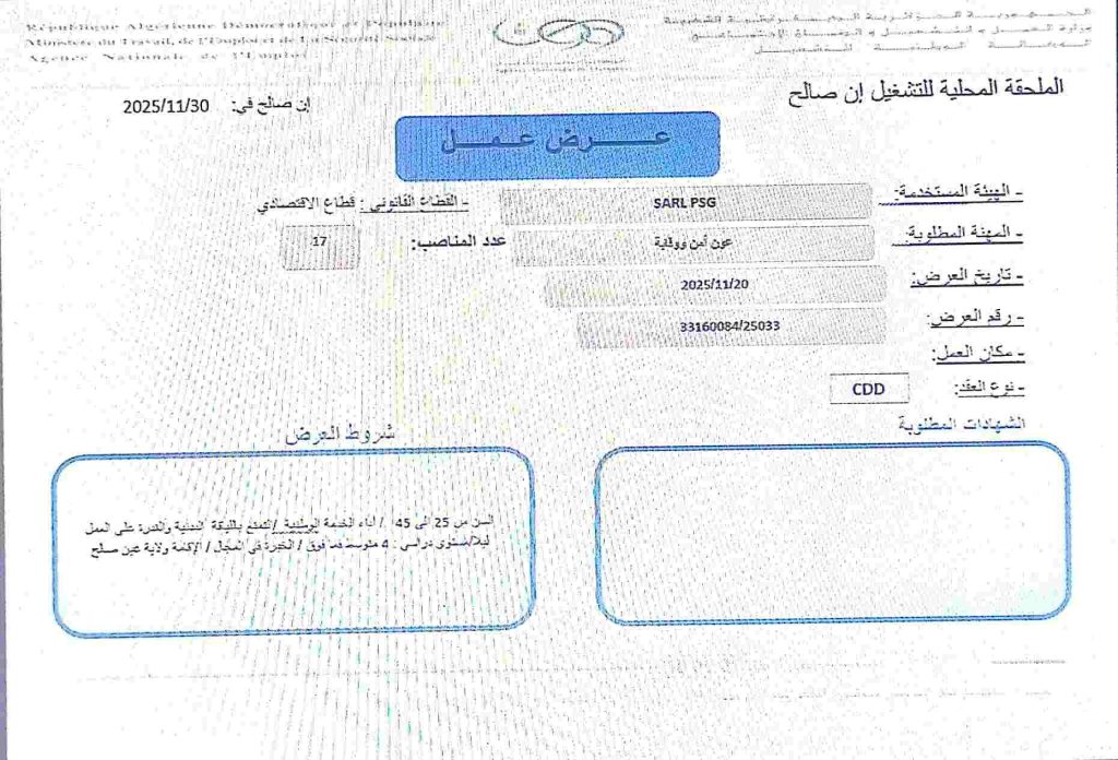 السن من 25 إلى 45 / أداء الخدمة الوطنية / يتمتع باللياقة البدنية والخبرة على عمل / الدبلوم مستوى دراسي / 4 متوسط صياغة / التخريج / المجل / الإقامة ولاية عين صالح.