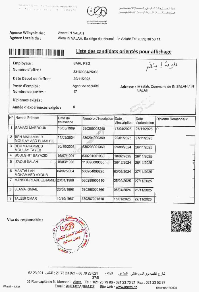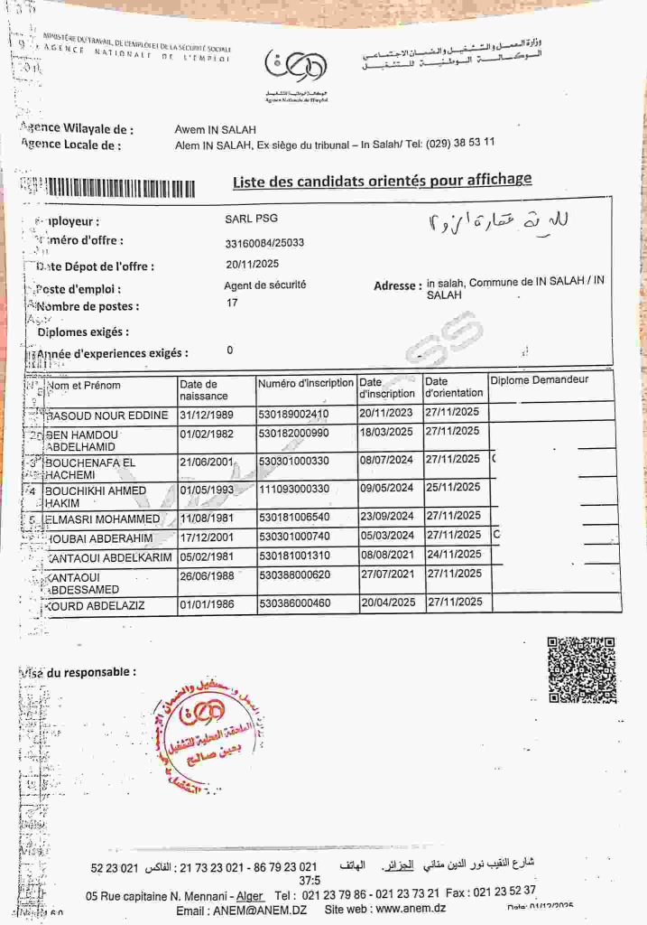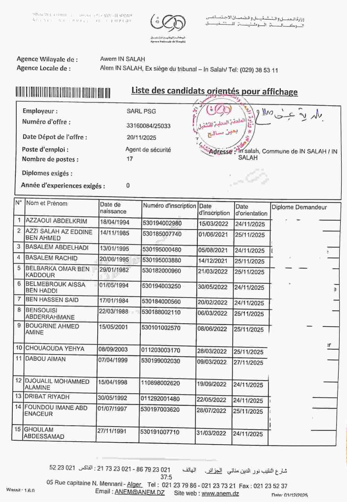 - اعلان توظيف أعوان أمن ووقاية بشركة SARL PSG